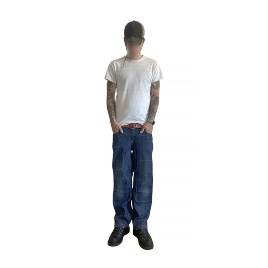 Lee Selvedge Denim - Repaired Adjusted leg (Baggy),Thigh Fade, Repaired Inner Thigh - [013]